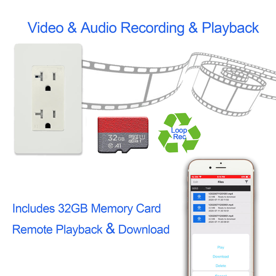 This hidden WiFi outlet camera supports local microSD card recording so you can keep video files under your own control: