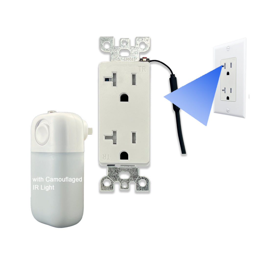 To reduce blind spots and improve coverage, this outlet camera offers three lens angle options at purchase. Choose the version that matches your outlet height: